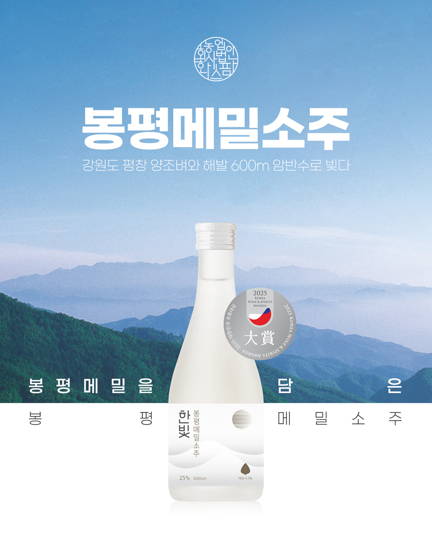 강원도 평창의 양조벼와 봉평 메밀로 만든 증류식 소주. 해발 600m 암반수로 메밀 특유의 향과 깊은 맛이 살아 있습니다.